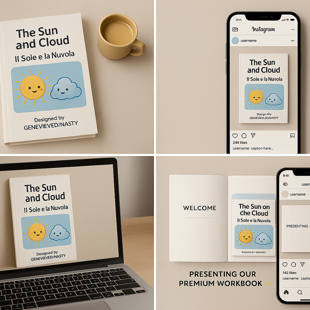 The Sun and Cloud is a soft, friendly workbook that introduces simple Italian vocabulary through two cheerful characters and clean printable pages.